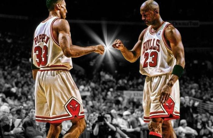 但是,东部决赛乔丹和年轻的皮蓬还是输了。199-91赛季,皮蓬被乔丹带到场均17.8分、7.3篮板、6.2助攻、2.4抢断的数据,两人终于灭掉了难缠的坏孩子军团活塞,皮蓬的季后赛数据场均21.6分、8.9篮板、5.8助攻、2.5抢断,这个小前锋数据像不像詹姆斯?然后,两人就带队夺冠了,而皮蓬也对乔丹暗生情愫,皮蓬变成了公牛的二当家。